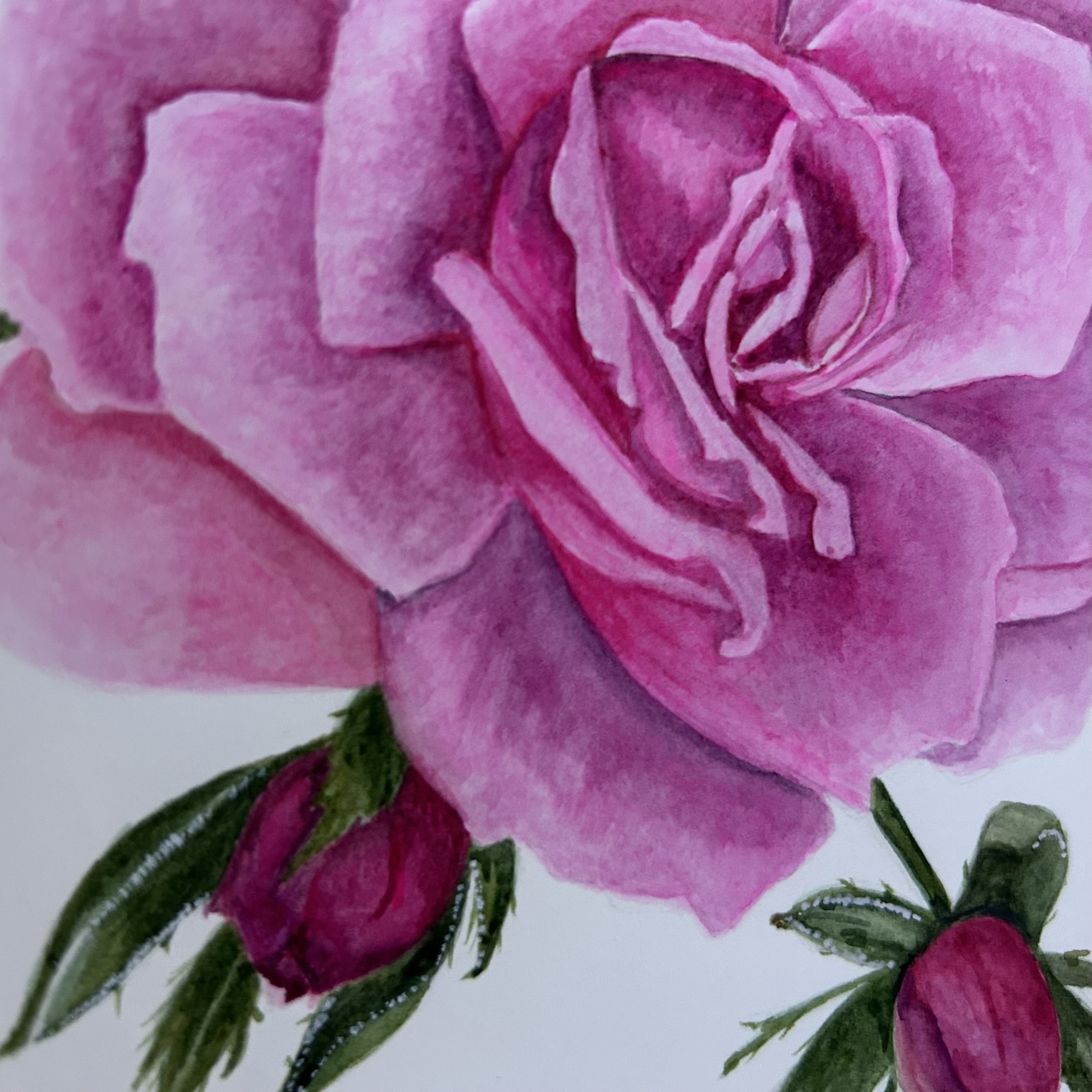 I painted this from a photo I took of this beautiful rose on a visit to RHS Wisley.
